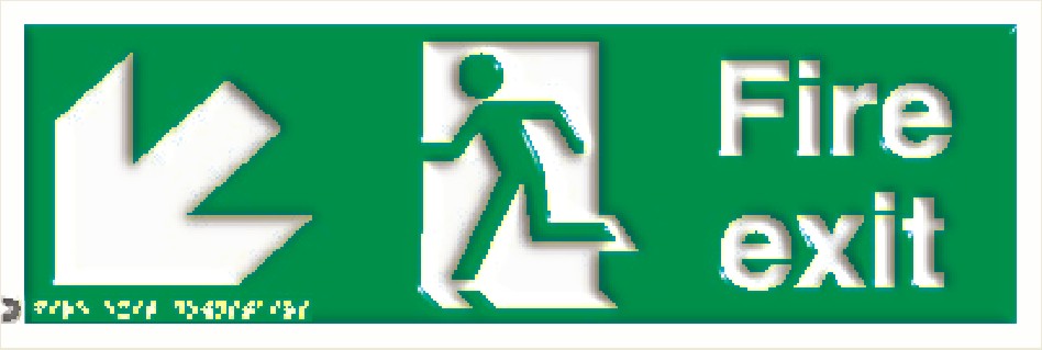 Fire exit, diagonal down left, braille, tactile, sign, signs,