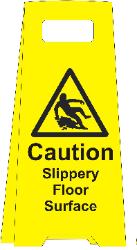 Double sided floor stand. Provides a quick and economical method for highlighting potential hazards. Folds flat for storage.